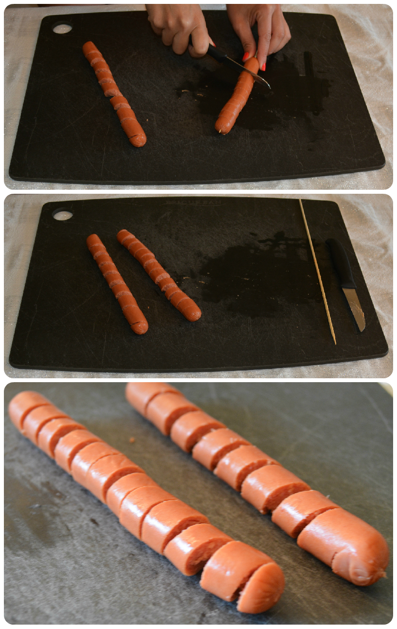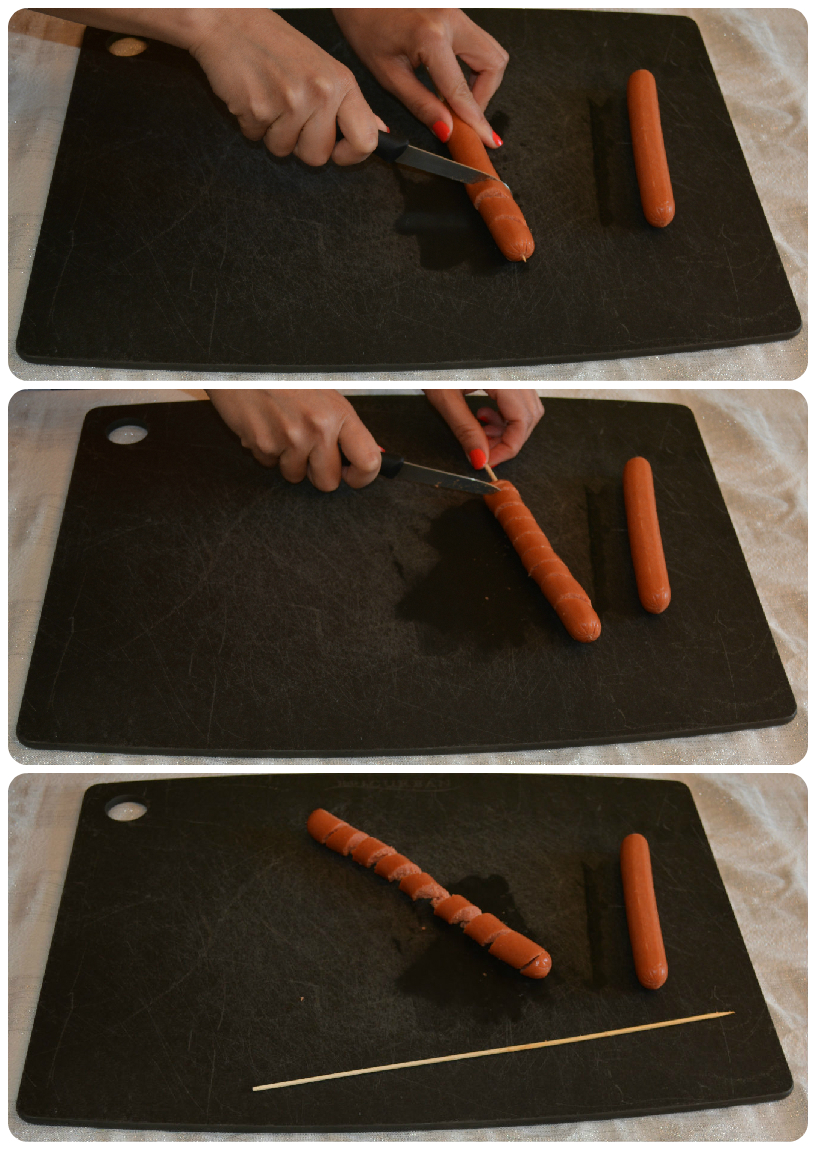 (You can also buy a handy gadget that does this as well. Simply do a web search for “spiral hot dog slicer.”)